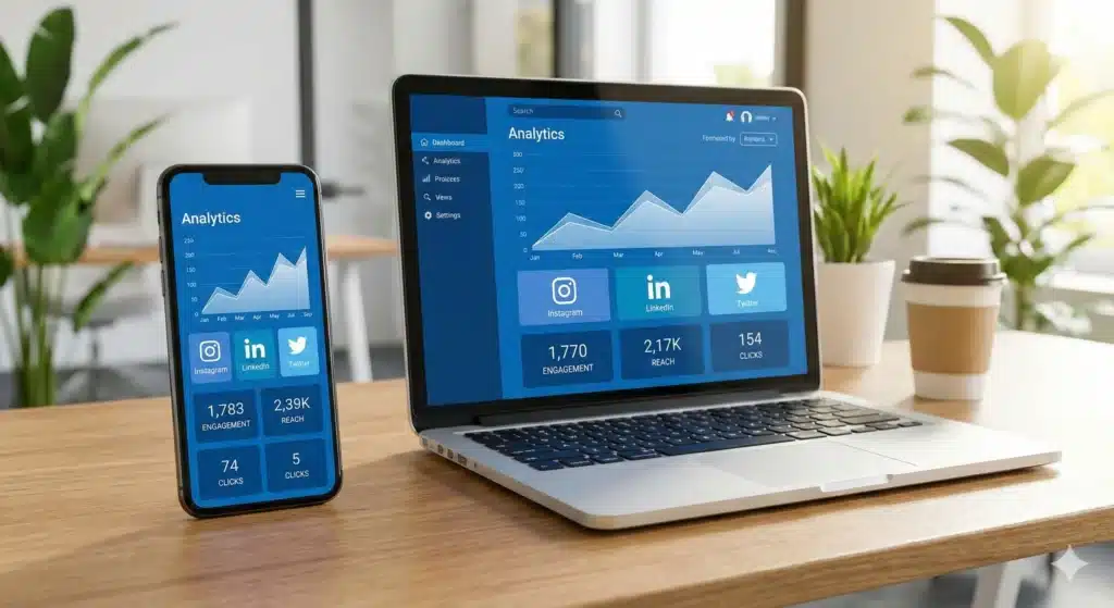 Analyse des indicateurs clés de performance (KPI). Ajustements continus pour améliorer portée, engagement et conversions.